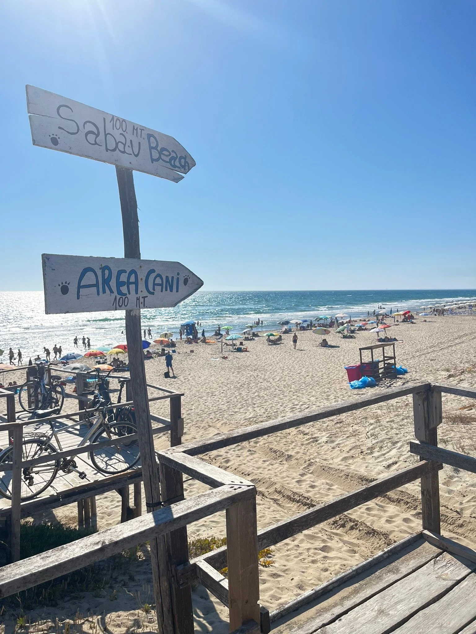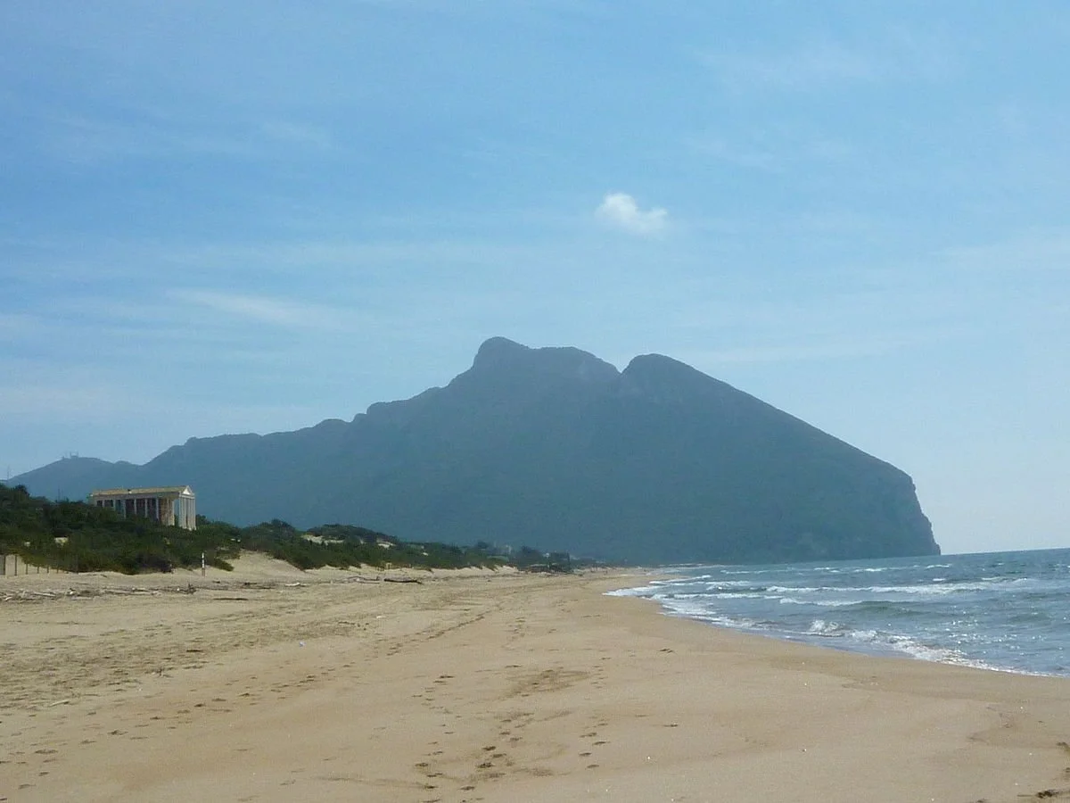 Nestled along the sun-kissed Tyrrhenian coast of Lazio, Sabaudia Beach feels like a hidden world apart. Just an hour and a half south of Rome, the landscape transforms from urban bustle to pastoral quiet: flat green fields stretch out on either side of the road, punctuated by farmhouses and the occasional palm tree. It’s hard to imagine that this lush countryside was once malarial swampland a century ago – land not bestowed by the gods but reclaimed by human will in the 1930s, As we drive in, the air shifts. There’s the warm scent of hay and tilled soil from the farms, slowly giving way to a salty tang carrying on the breeze. I roll down the window; the summer air is hot but lifted by a gentle breeze, hinting that the sea is near. In the distance, looming above the plain, Monte Circeo rises like a guardian watching over the coast. Its silhouette is unmistakable. Locals say it looks like a woman lying on her back, face turned to the sky. Approaching Sabaudia, I feel a subtle excitement build. We are about to step into a place where myth and nature, past and present mingle by the shore.